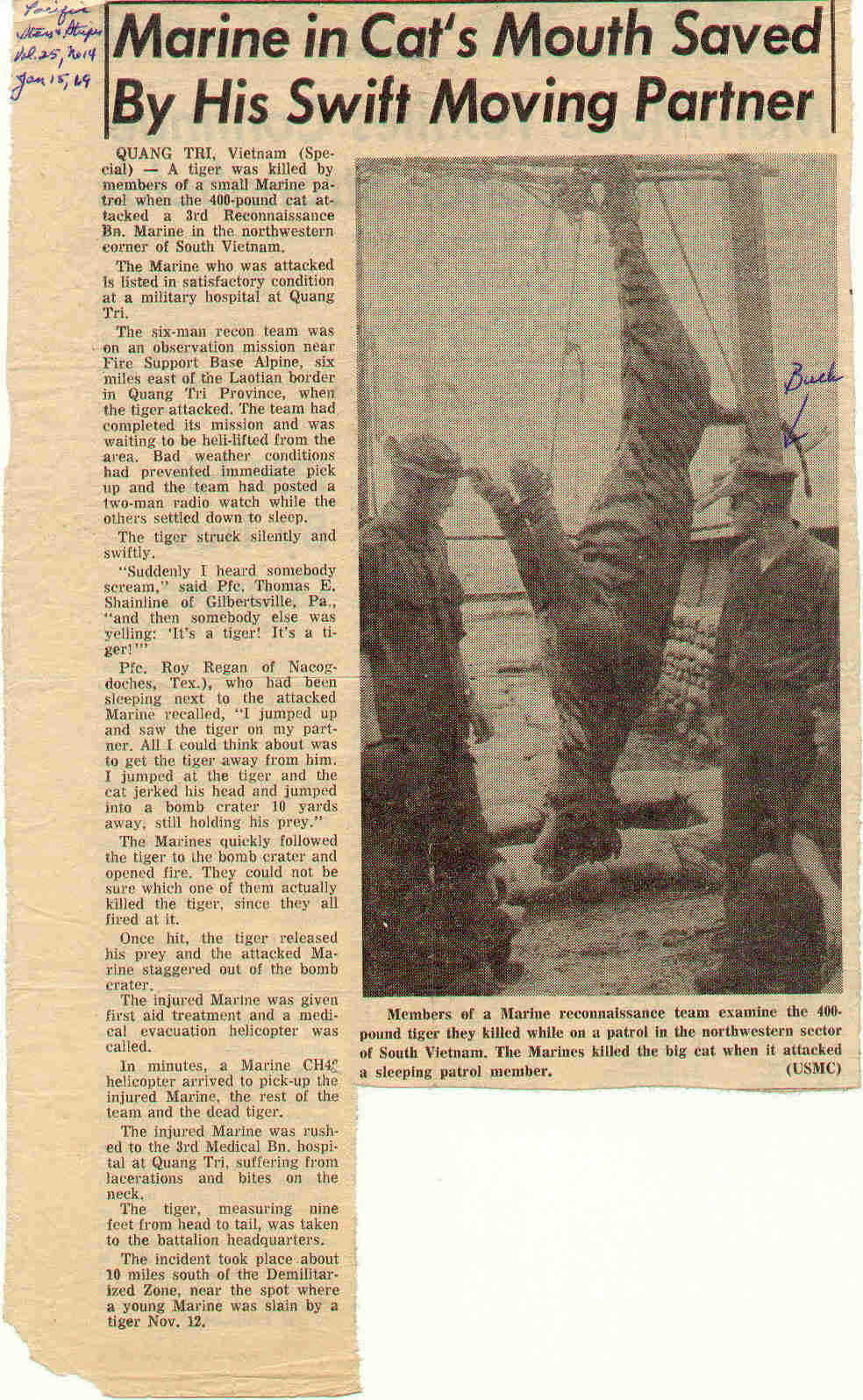 Article on Tiger Attack that appeared in the Pacific Stars & Stripes. |
