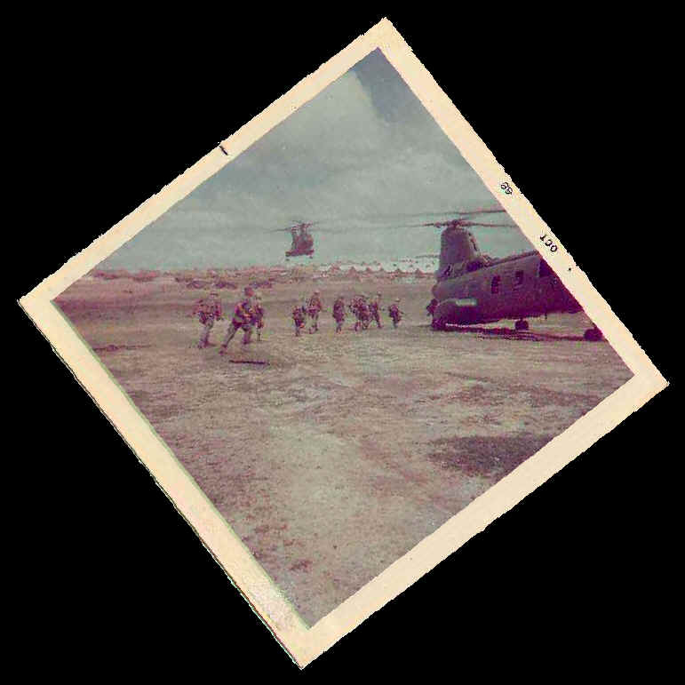 CH - 46's Coming landing at 3rd Recon's LZ at Quang Tri to pick up a reactionary force. |