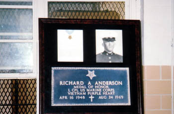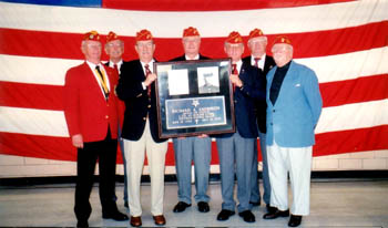 ![]() Marine Corps League members. Al Kotrla in red blazer. Maj. Gill left of plaque. Maj. Scott Moseley right of plaque. |