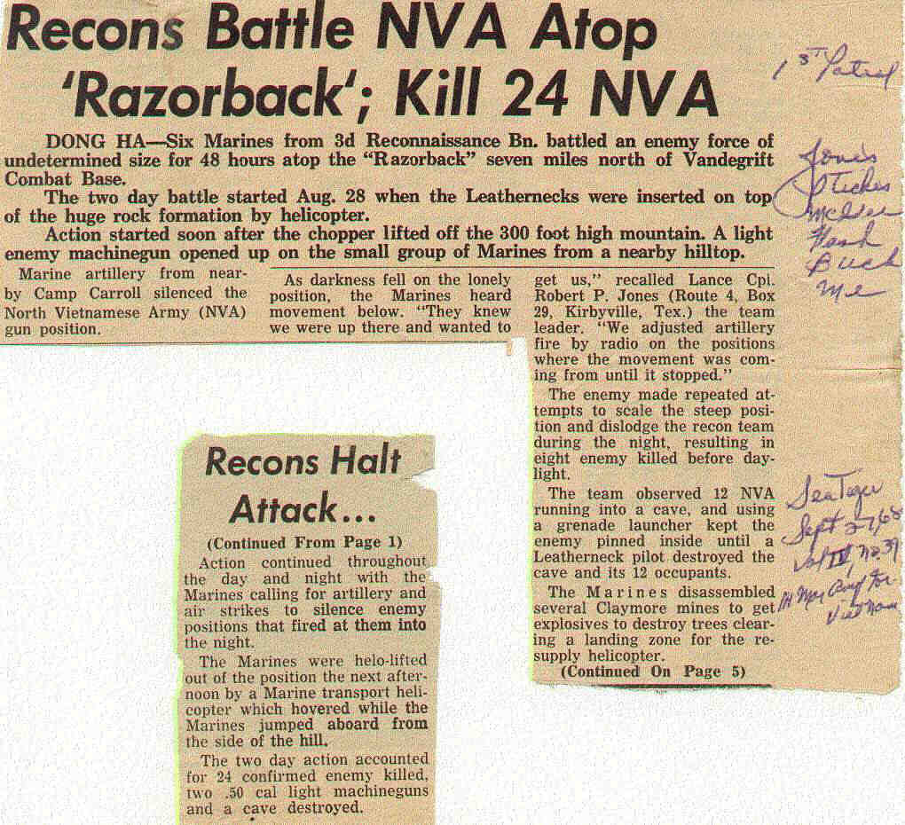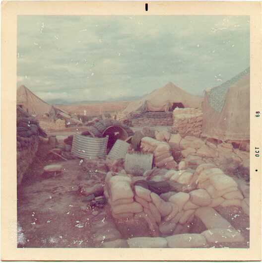 L/Cpl. Robert P. Jones & L/Cpl. Jackie Lee Blankenship (Buck) of Team 1C2 (Cpl. Pete) surveying Monsoon damage. |