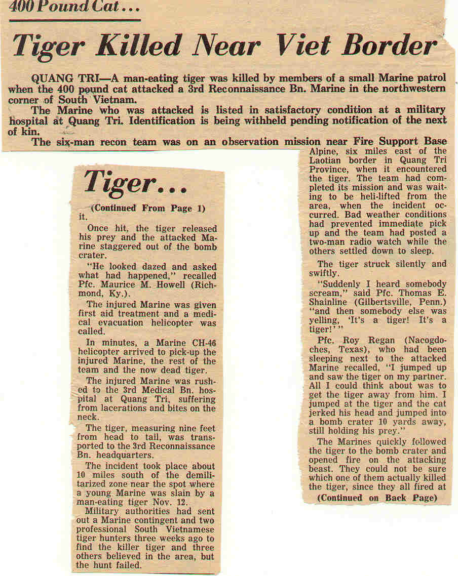 Article on Tiger Attack that appeared in the Pacific Stars & Stripes. |