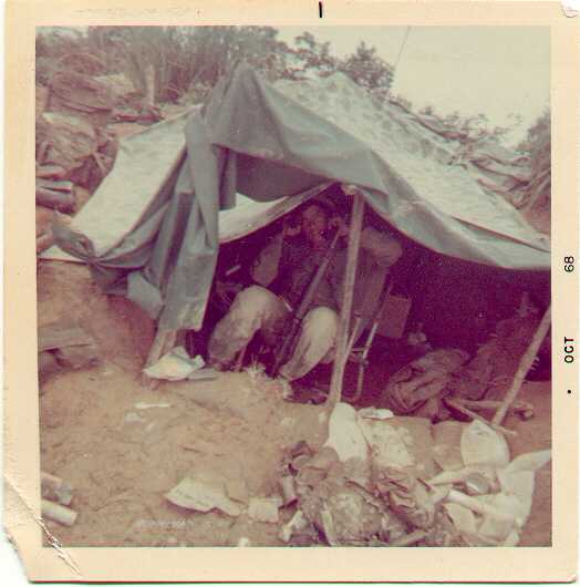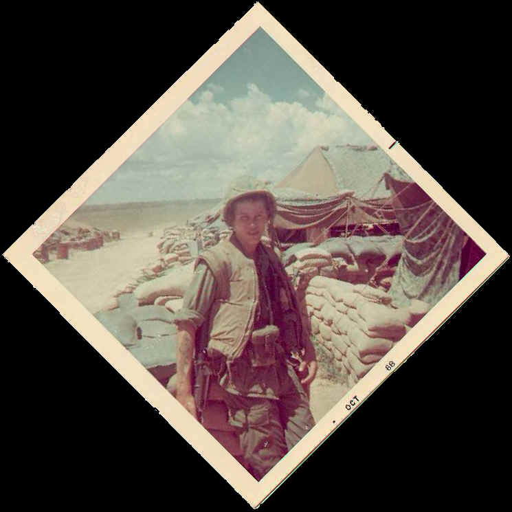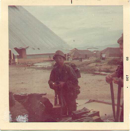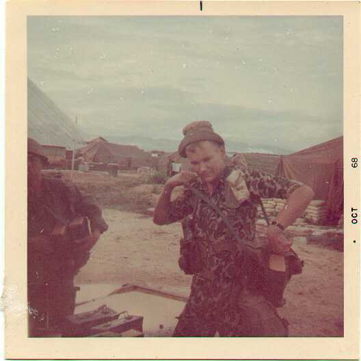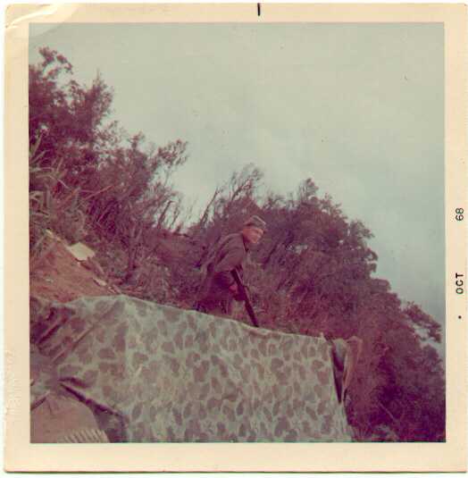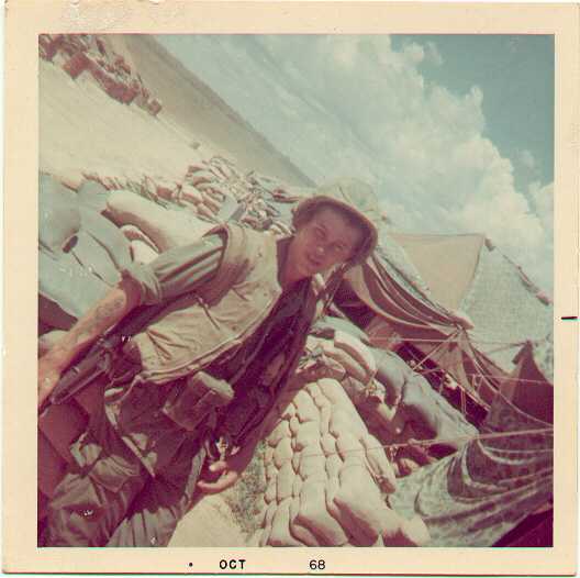 Pfc. Dennis Soldner (me) upon return from reactionary patrol dressed up in grunt gear. The only other time I would wear that gear was on Rough Riders. |