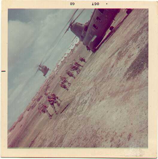 CH - 46's Coming landing at 3rd Recon's LZ at Quang Tri to pick up a reactionary force. |