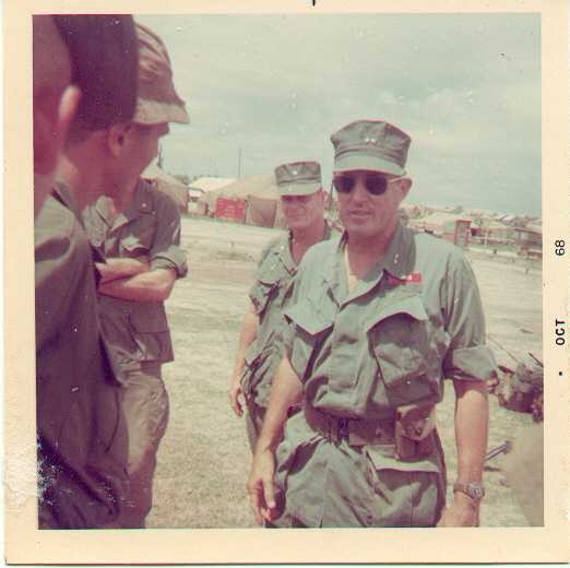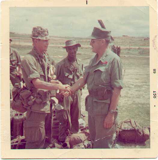 Major General Raymond Davis, 3rd Marine Division Commander visiting 3rd Recon teams waiting to be picked up for insertion. |