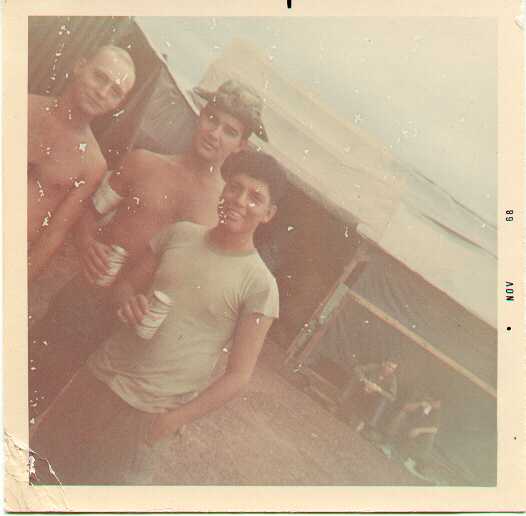 L/Cpl. Leslie E. Gordon, Jr. (Flash) on left, Pfc. Anthony Cardenas on right, & Unidentified (Wounded) Recon Marine in center celebrate our