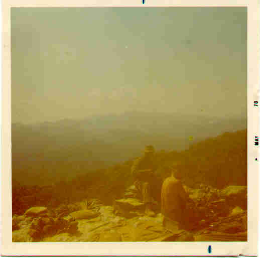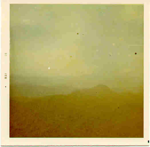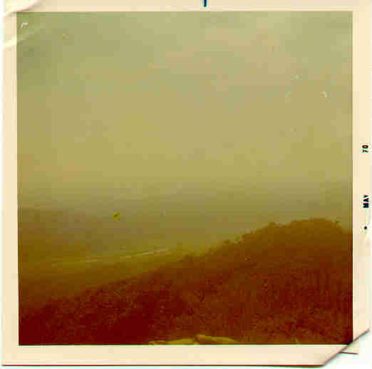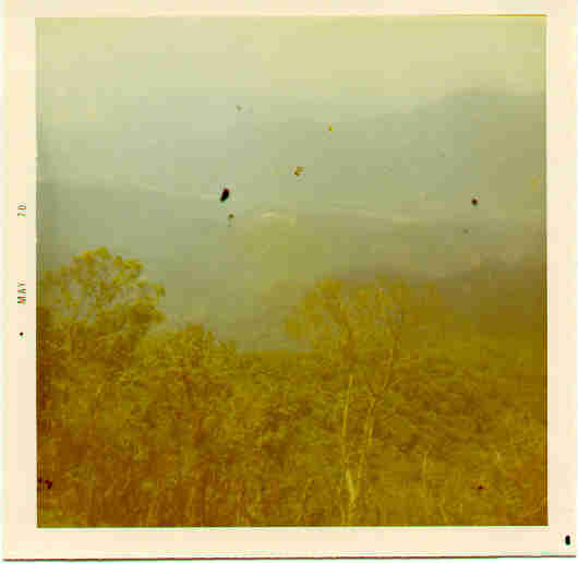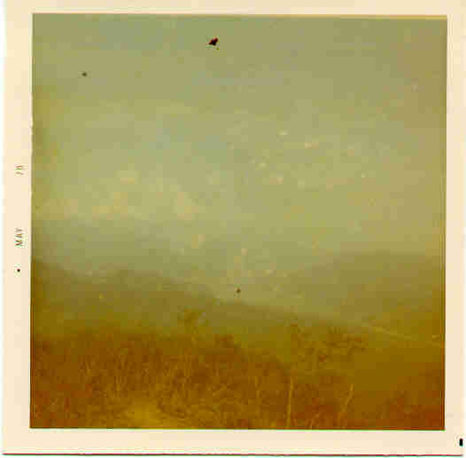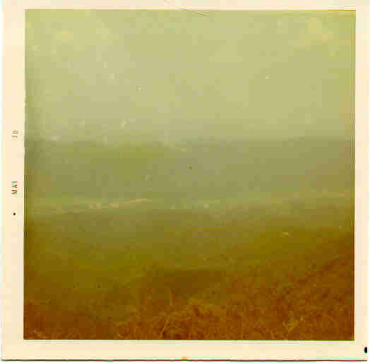 Looking North Northwest from Hill 819 to Quan Thu in the valley where the Song Quang Tri and Highway 9 bend south of VCB. We would witness a firefight in the low hills in the distance between the grunts from elements of 9th Marines and a Rear Guard of an NVA convoy. |