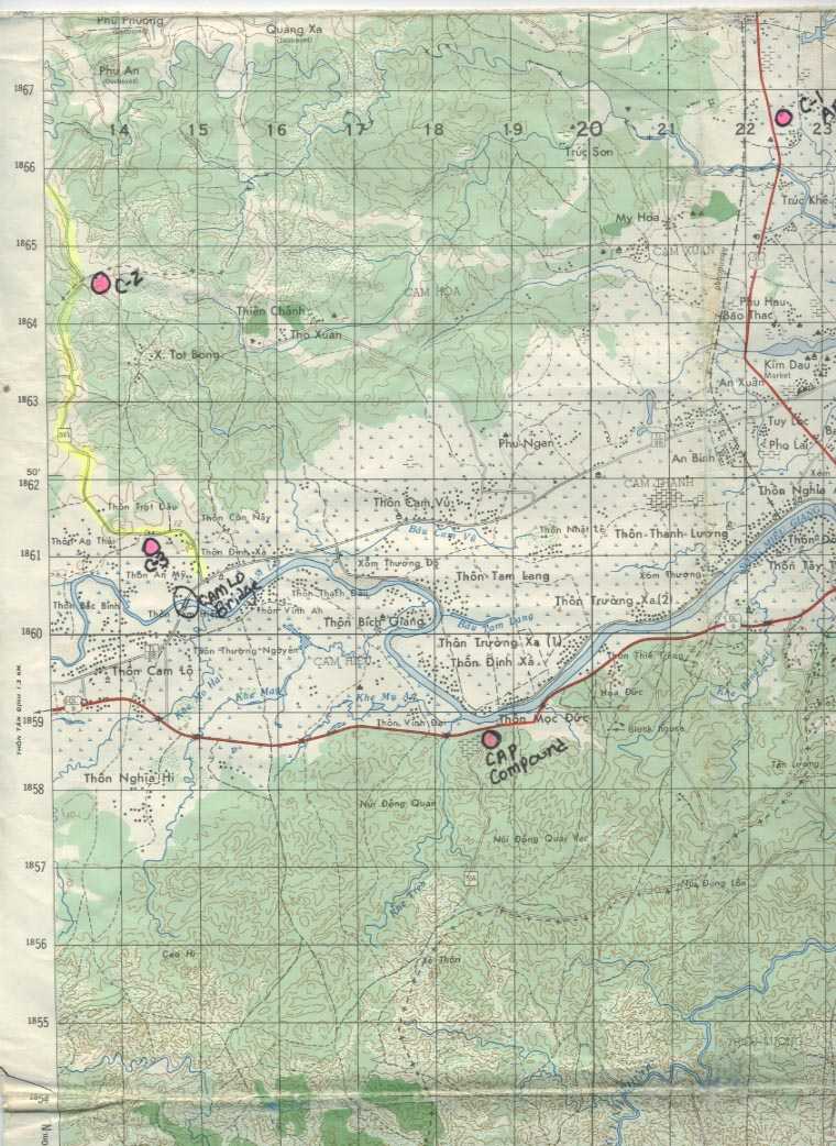 Map of Cam Lo area, including Cam Lo Bridge, C1, C2, C3 & CAP Compound. |