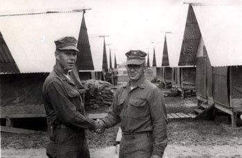 ![]() Lt. Fisher congratulating Cpl. Barnes for his Silver Star. |