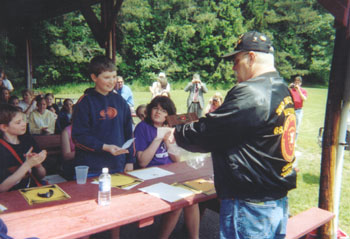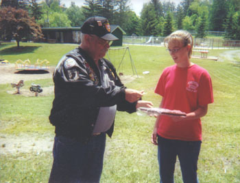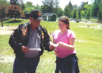 Ostrom presenting Kathleen Walpole with her award and a check for $100