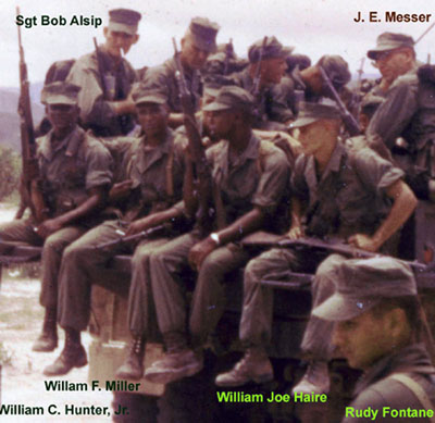 Rudy Fontane is the lone Marine with M-14 slung on his shoulder.
