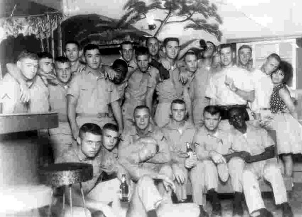 The 3rd Platoon of Charlie Company was detached from the company in June of 1964 and didn't reunite with them until Charlie Company and all three platoons rejoined and mounted out for Subic Bay for Raider Training. The 1st and 2nd Platoons of Charlie Company left Camp Fuji around August 8, 1964, in the alert ordered caused by the Bay of Tonkin Incident. This movement, in fact, involved the entire 3rd Recon Battalion, except for Bravo Company which was then a part of the 4th Marine Brigade in Hawaii. In less than 24 hours the entire battalion left Camp Fuji by truck to Iwo Kuni, and from there went by C-130s to Futenma MCAS, Okinawa. There Charlie Company trucked to Camp Schwab. Within a few days of arriving at Camp Schwab, the Third Platoon was detached and went to sea as part of the 9th MEB. The Third Platoon was aboard the USS Epping Forrest and the USS Cook (APD). After running some beach surveys at Cam Ranh Bay, Republic of Vietnam, in September, 1964, Charlie Company headed for Subic Bay for a port call. While at Subic, the Third Platoon pulled liberty together and had this group picture taken.