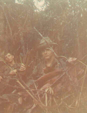 Then all of a sudden about 10-15 meters down southeast from us in the short section of the L, there was a noise and the jungle began to part. You could not see anyone but apparently, one of the enemy was looking out into the field for us. I raised my M79, which still had a grenade in it. I did not have the best line of sight. I waited, but the enemy slowly backed into the jungle closing the bush he had parted. I do not know if he in fact spotted us, and the event that takes place next leads me to believe he did not, but no one fired. I am not sure why none of the others fired; maybe we were all waiting for someone else to fire that first shot but our doctrine dictated that we not engage unless absolutely no alternative choice existed. I can only assume it was that discipline that prevented our firing so as not to give our position away until truly discovered. In my case however, besides the reason I have just mentioned there was a second reason I was hesitant. I feared that when the grenade exploded it would also wound my teammates.