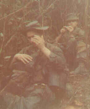 We were inserted without any incident. At that time because of the open terrain I carried the M79 loaded with a 40mm grenade. L/Cpl. Lowry (Fish) was at the point as we slowly made our way down the finger and into the dense forest of the jungle. At 2nd point behind Fish was Pfc. Shainline, followed by Pfc. McGee (Mac) with the machine gun, then Pfc. Butcher (Butch) with the radio, I was next with the grenade launcher still loaded with a 40mm grenade, followed closely behind by L/Cpl. Sticker at tailend. Once into the forest we took a short break.