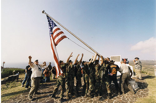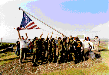 We reenacted the Iwo flag raising on top of Suribachi with members of the Young Marines and a few Iwo Vets during the visit.