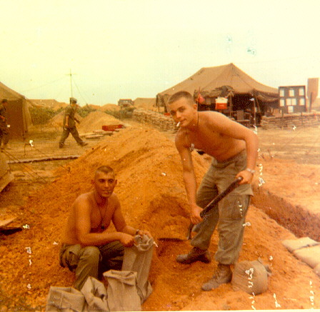 Wilson 1: Lieutenants Frank Sinagra and Nels Youngstrom filling sandbags, E Co area."