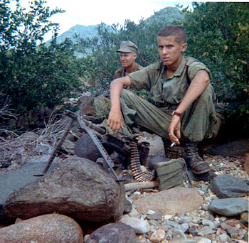 ![]() Ron Gavatorta and Ernie Davis in front of the Bravo Company Office in Phu Bai. |
