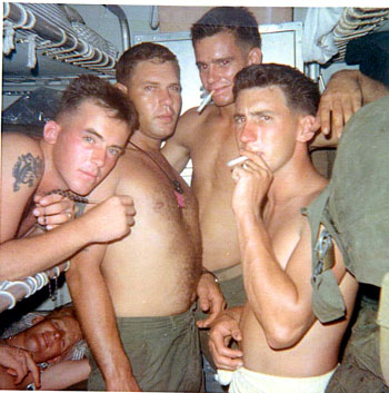 ![]() Tony Johnson, Robert Barnes, Richard Semer and Dan Preston on the ship to Okinawa in early 1967. |